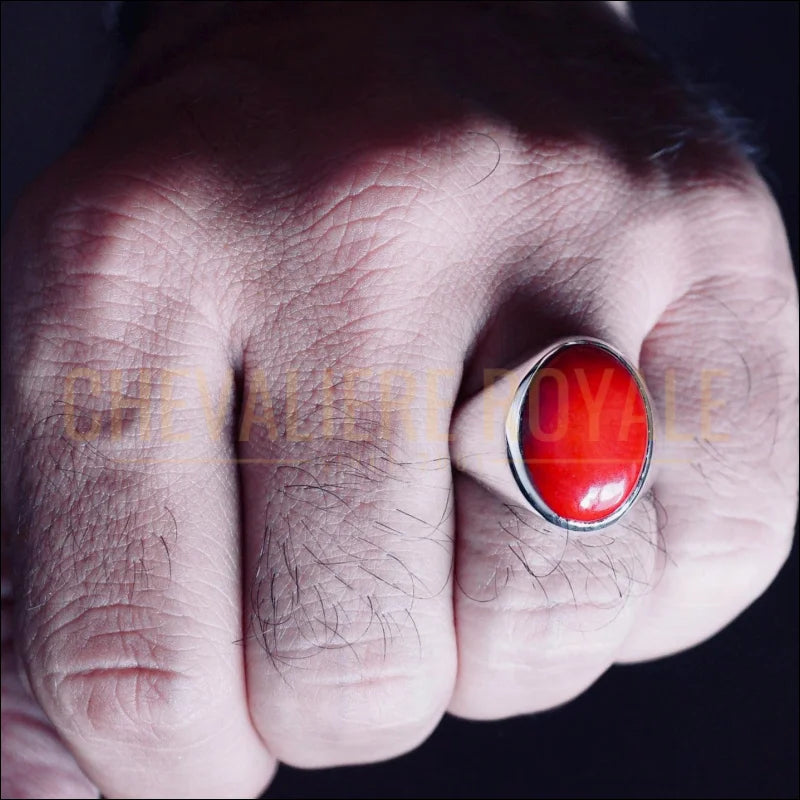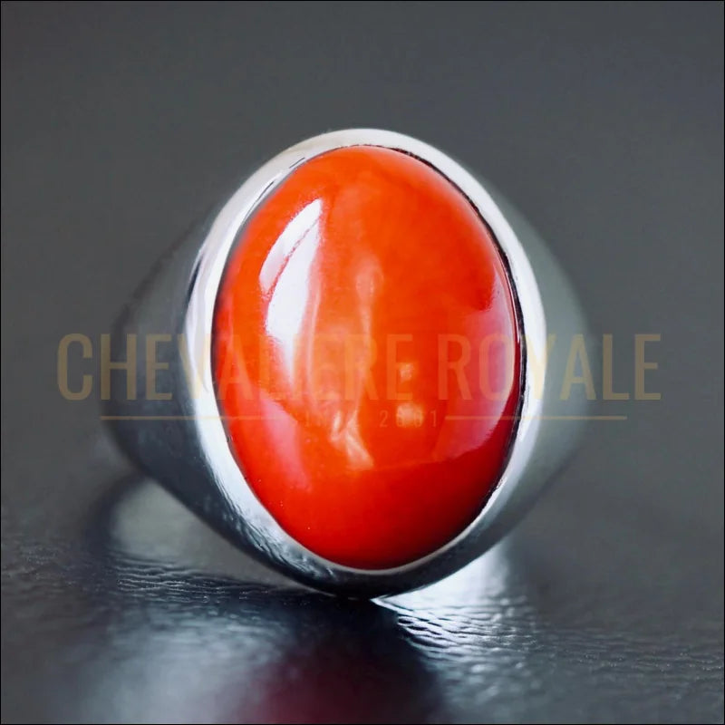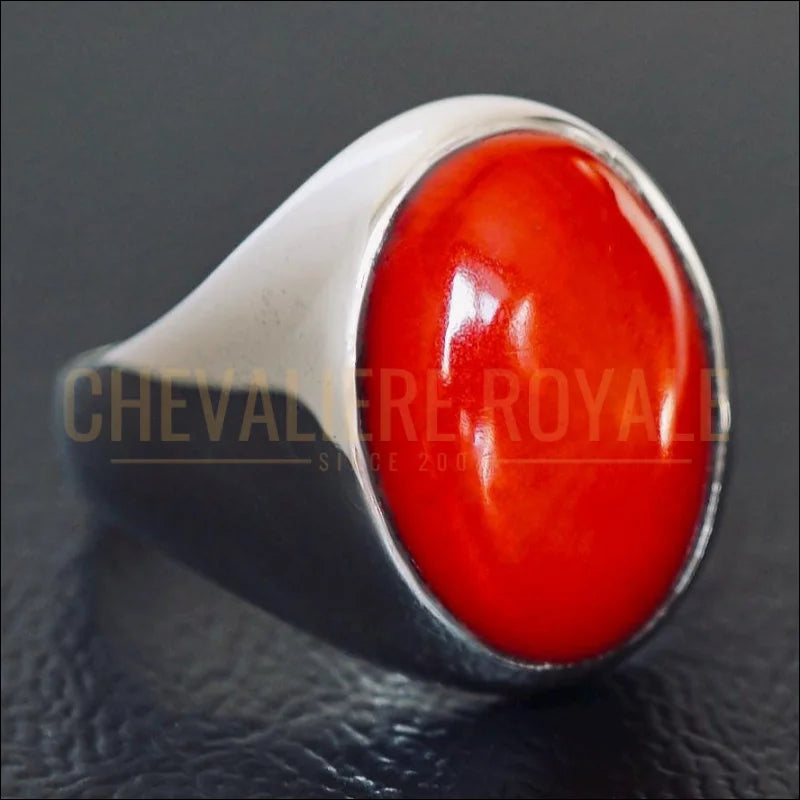 • Style : Chevalière corail rouge pour homme, sobre et élégante