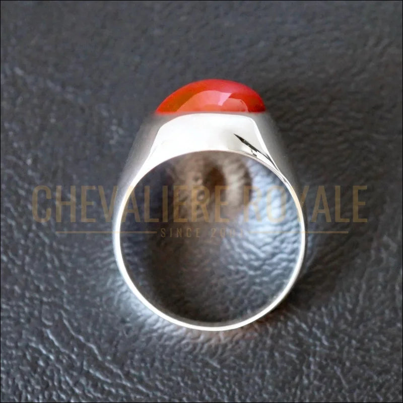 Bague-Corail-Rouge-Argent–Chevalière-Homme-Artisanale-Chevaliere-Royale-5
