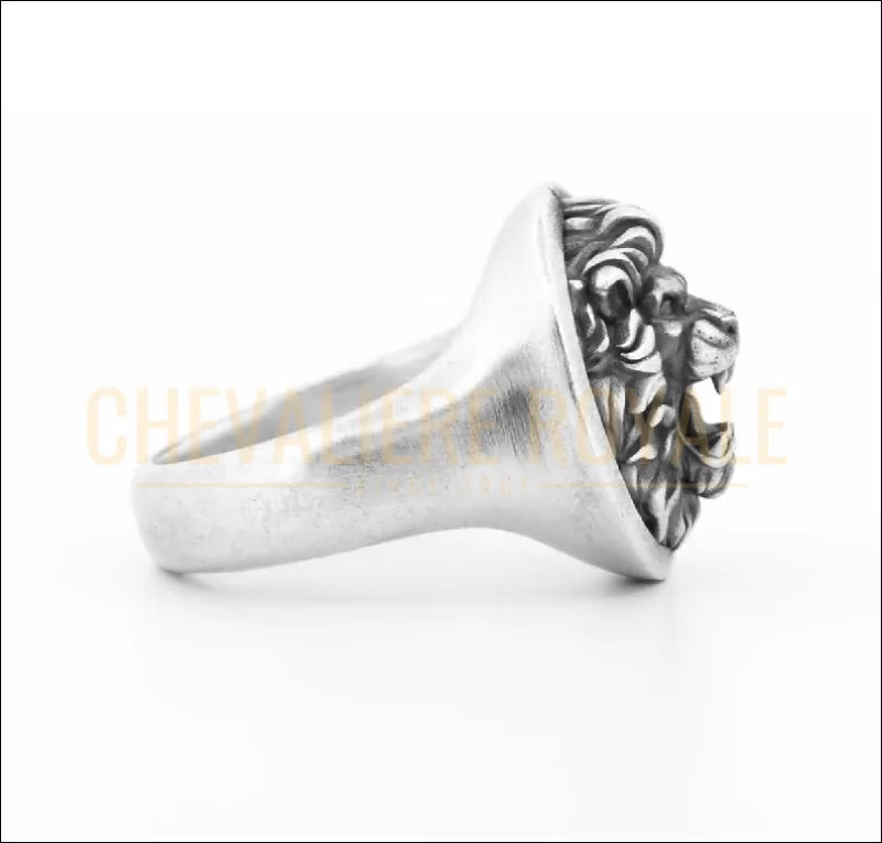 Bague-Homme-Tête-de-Lion–Argent Massif, Style Médiéval-Chevaliere-Royale