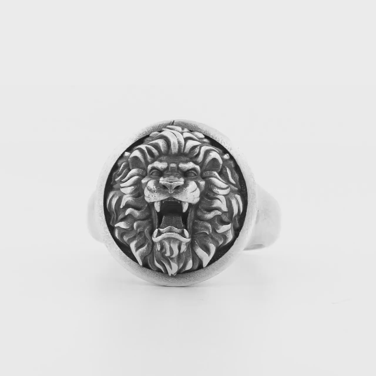 Bague Homme Tête de Lion – Argent Massif, Style Médiéval