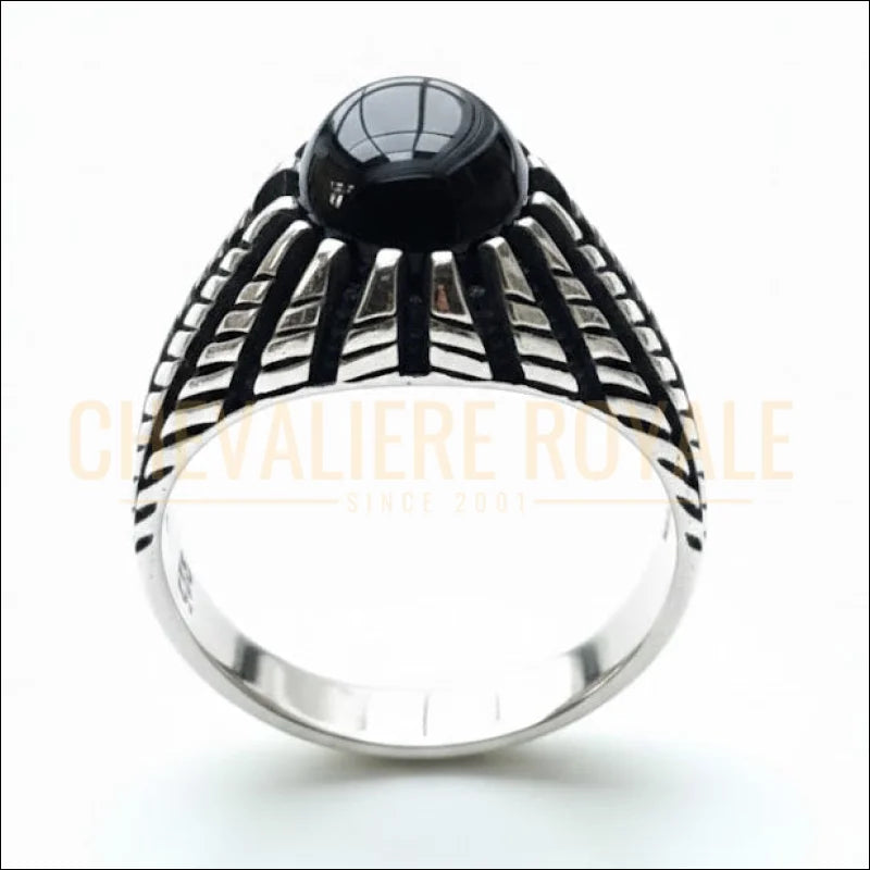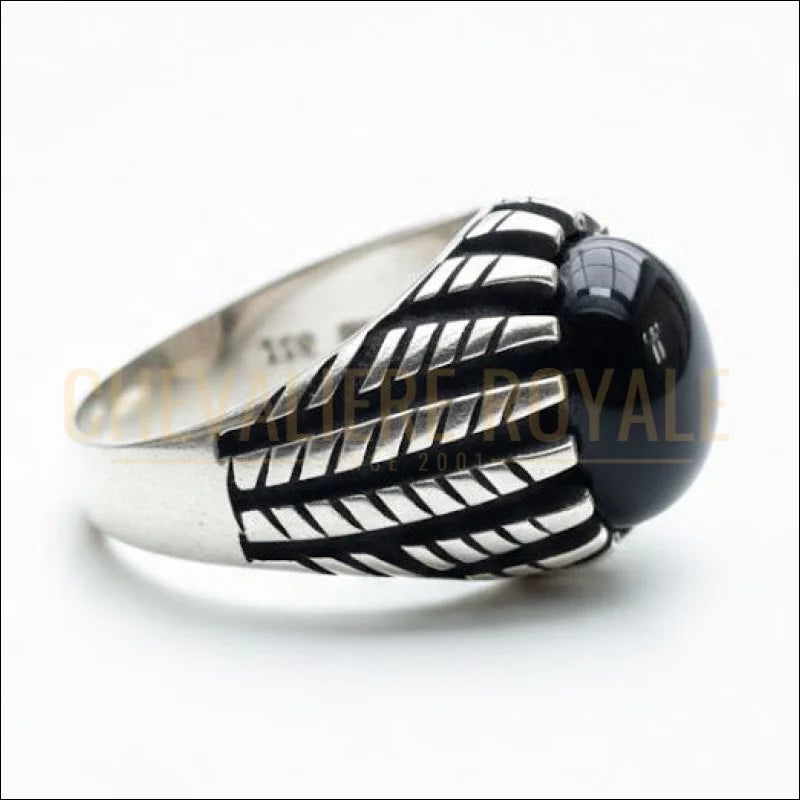 bague-pierre-onix-ovale-noire-chevaliere-royale