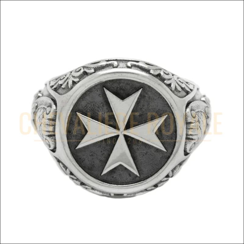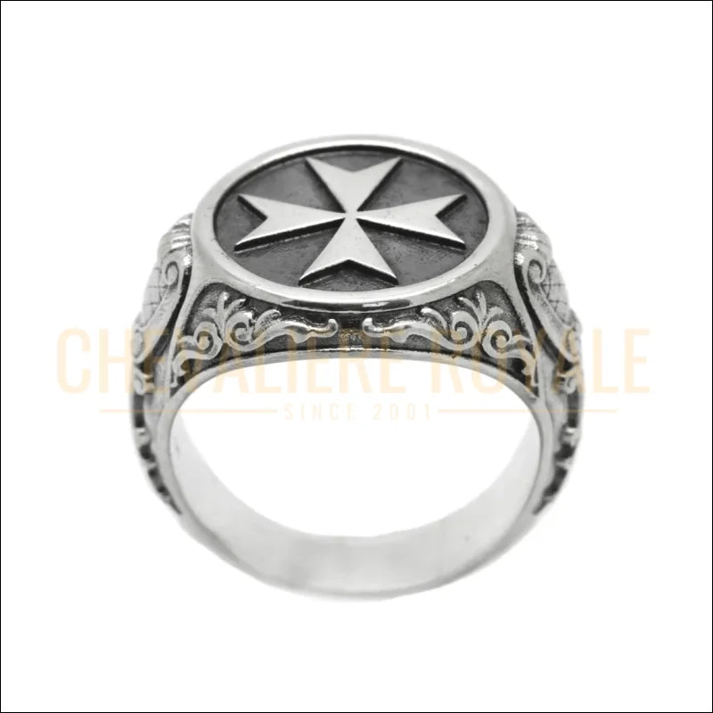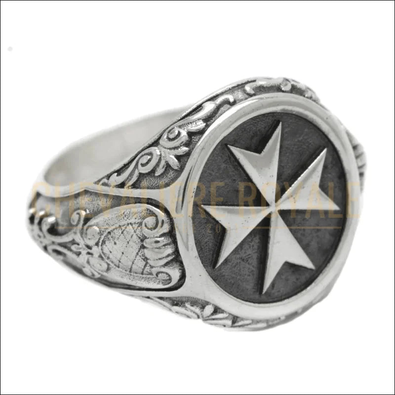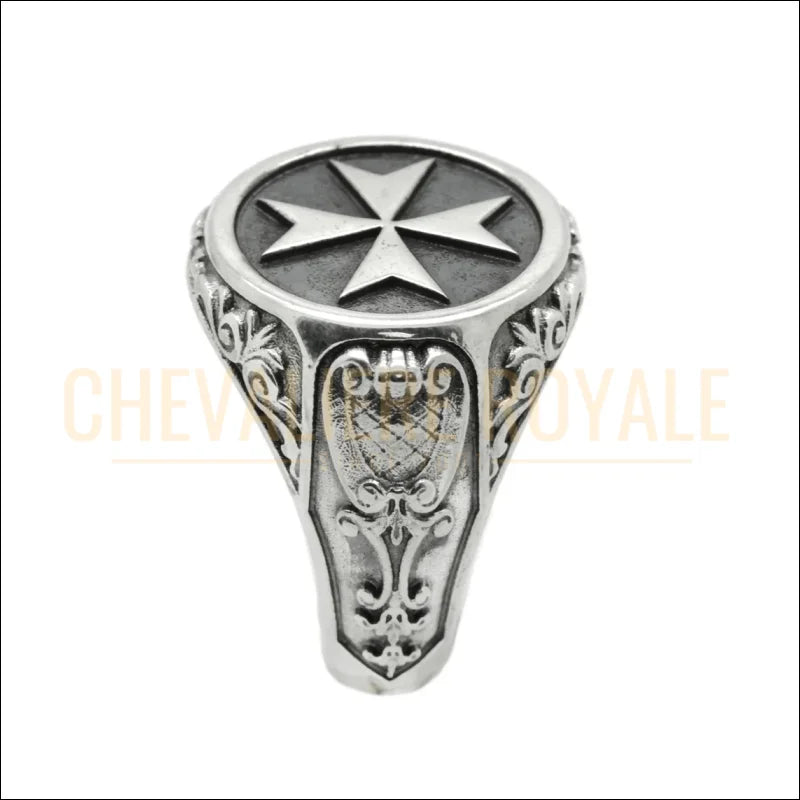 Chevalière chrétienne homme en argent serti d'une croix de Malte