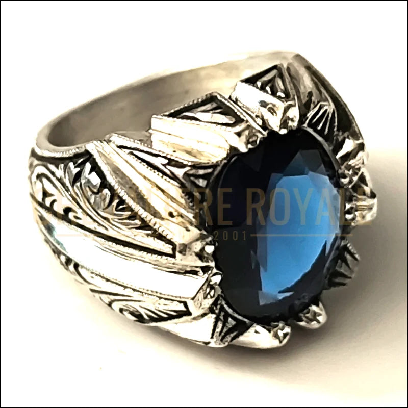 chevalier-artisanale-argent-massif-pierre saphire-bleue-chevaliere-royale