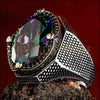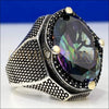 Chevalière royale homme argent avec la pierre de topaze mystique