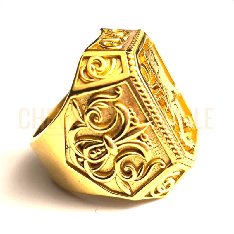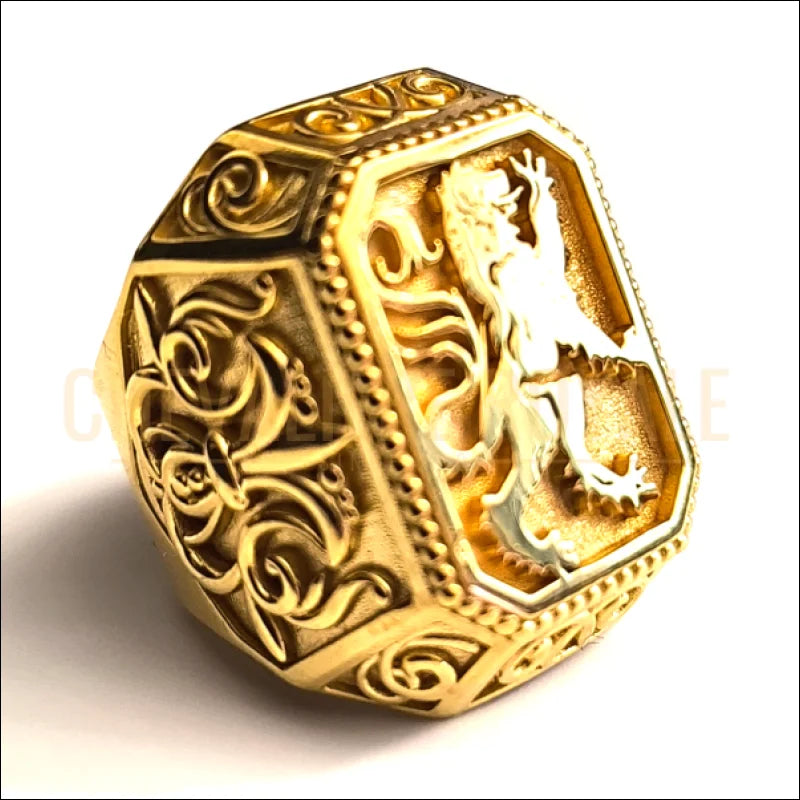 bague chevalier homme lion en or plaqué 18k