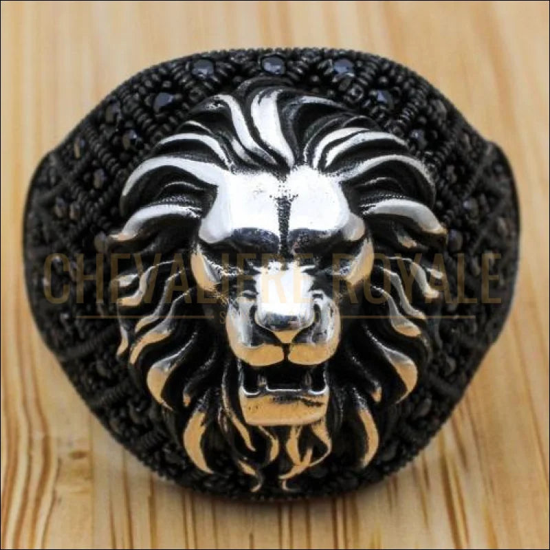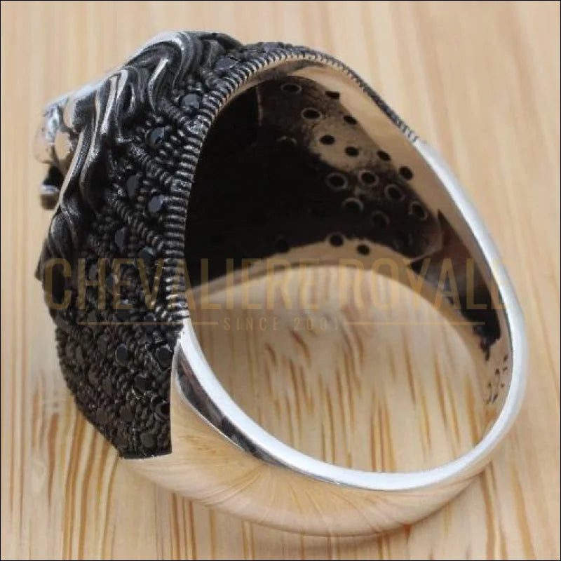 BAGUE-TETE-DE-LION-HOMMES-ARGENT-CHEVALIERE-ROYALE
