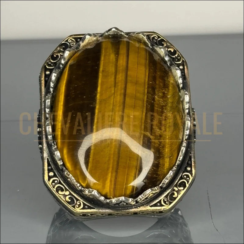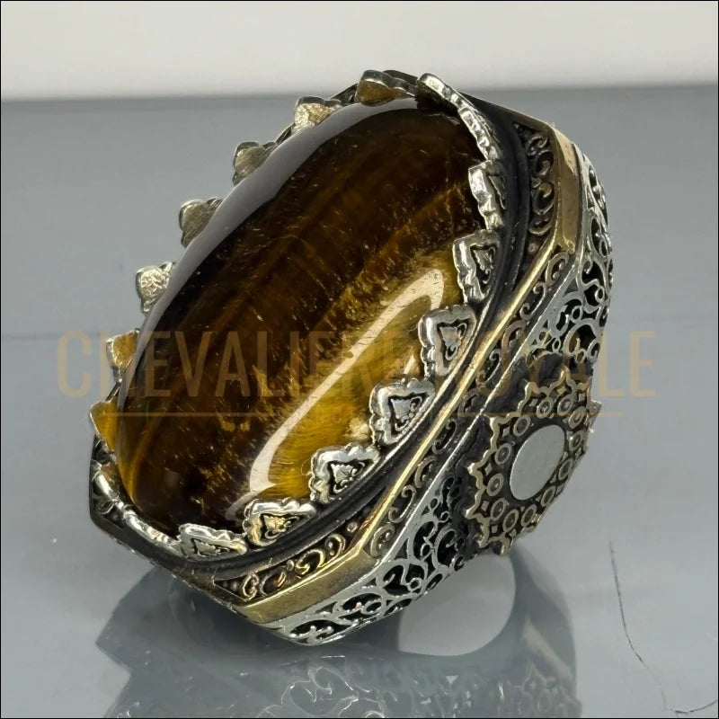 Ceci n'est pas une simple bague, c'est un fragment d'histoire. La chevalière Œil-de-Tigre, baptisée "Sultan", est une pièce imposante et audacieuse, conçue pour l'homme qui respecte la tradition et exige l'excellence.