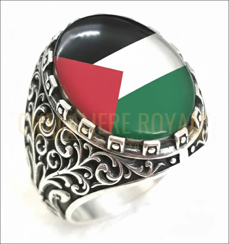 Chevalière Drapeau Palestine en Argent – Symbole d’Identité et de Solidarité