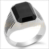 Chevalière en pierre onyx noir pr hommes en argent 925