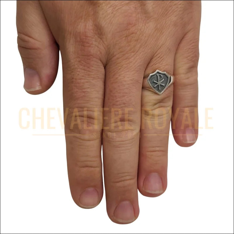 Bague-Femme-Argent-Chrisme -Symbole-Protection-Foi-Chevaliere-Royale