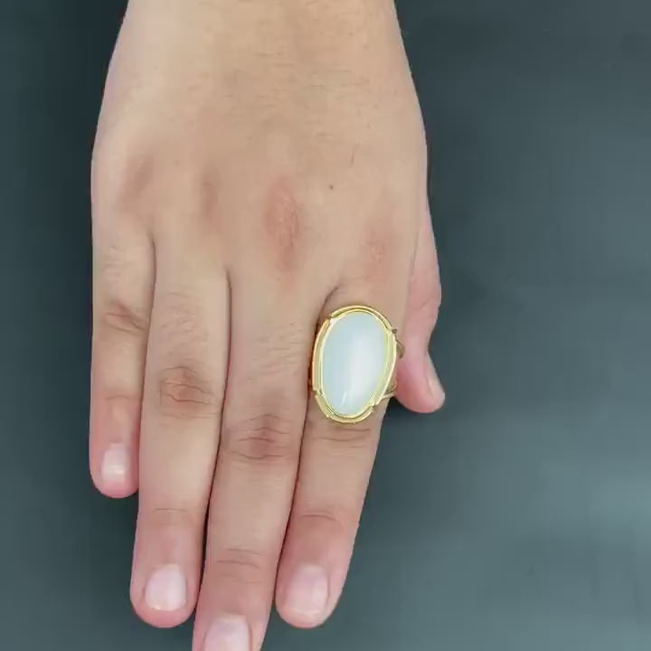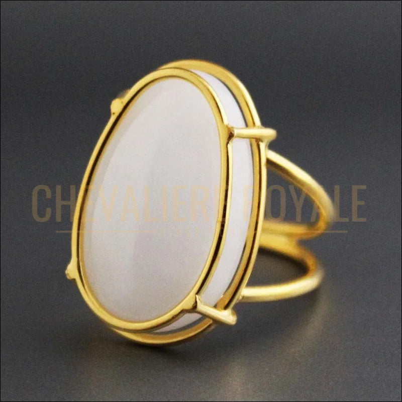 Bague Femme Ovale en Agate Blanche – Équilibre et Sérénité en Argent Massif
