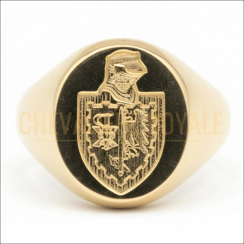 Chevalière Héraldique Personnalisée : Gravure Blason Familial en Or Massif