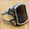 La chevalière est montée sur un bracelet en argent massif. Inspirée des années 60 en mettant l'accent sur la pierre d'œil de tigre naturelle et la fine bande, cette pièce ajoute une subtile touche rétro à n'importe quel look. Disponible pour les hommes.