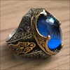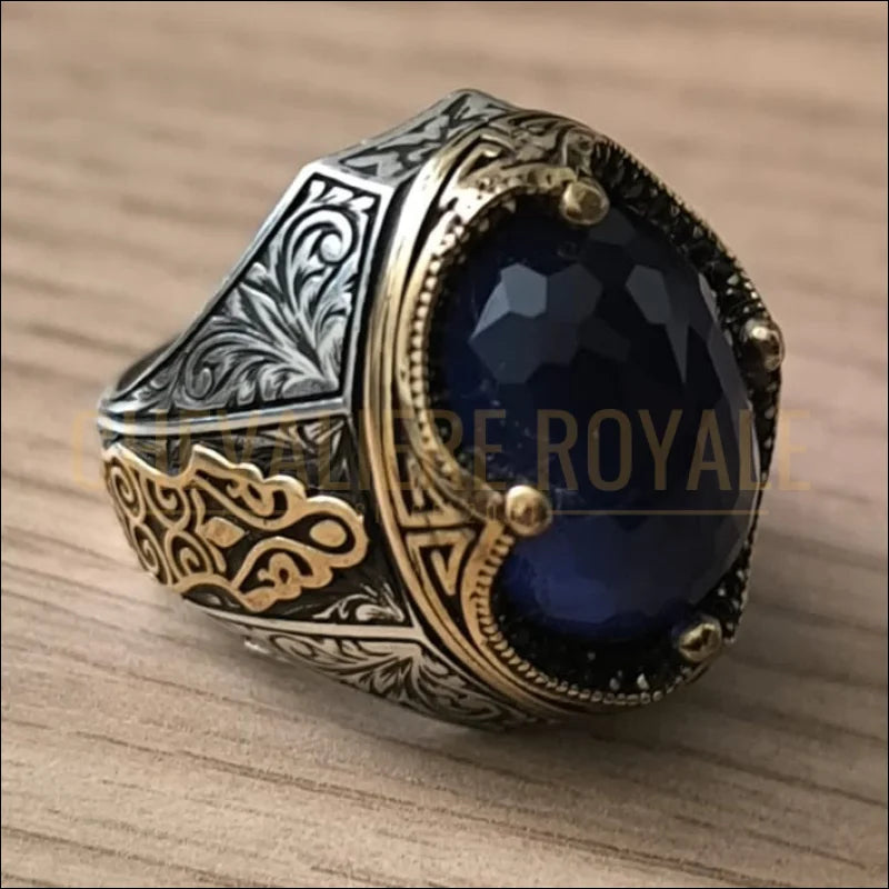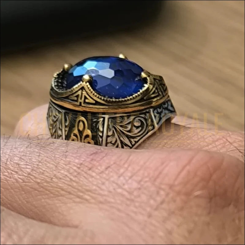 ✨ Une véritable chevalière homme artisanale, en argent massif 925, sertie d’une magnifique pierre bleue facettée.