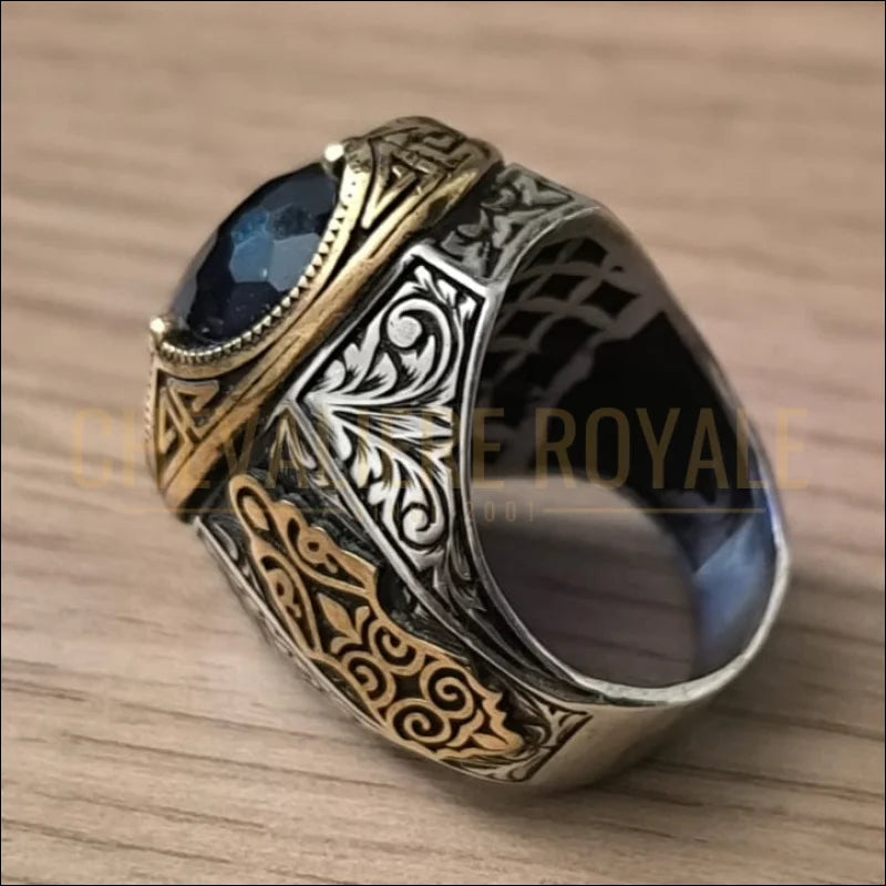 💍 Modèle imposant, avec un travail de gravure oriental détaillé et des finitions dorées discrètes.