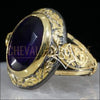 Chevalière homme argent plaqué or équipée d'une pierre améthyste