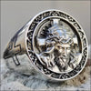 Chevalière homme argent religieuse Tête de Jésus Christ et la Croix bijou biker