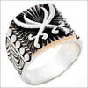 Chevalière Islamique en Argent pour homme d’EY196 : cette  bague athlétique par son poids de 13,06 et son motif de deux épées d'Hz. ALI à double tranchant, emblématique de bravoure et d'héroïsme tendance à porter par les hommes.