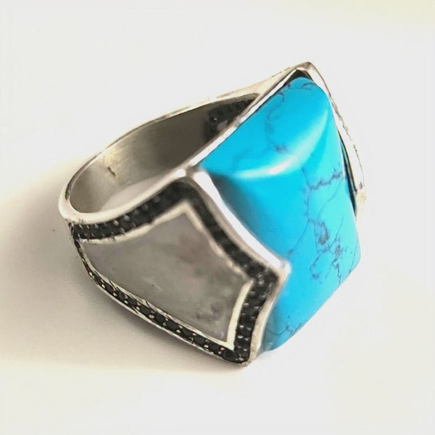• Équilibre de la pression artérielle : La chevalière homme en argent avec pierre turquoise contribue à équilibrer la pression artérielle.
