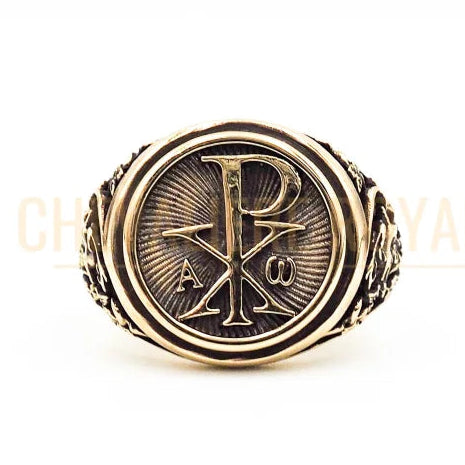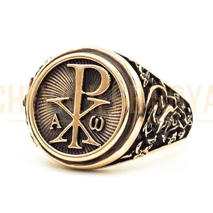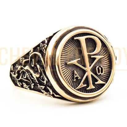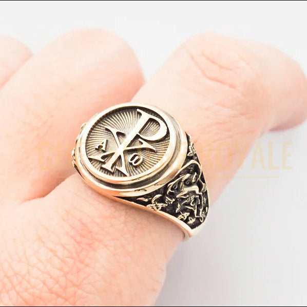 Bague Chrétienne Chi Rho Alpha et Omega – Chevalière Spirituelle pour Homme