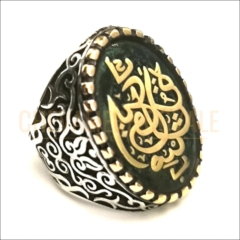 bague-homme-sans pierre-couleur-vert-calligraphie-arabe-chevaliere-royale