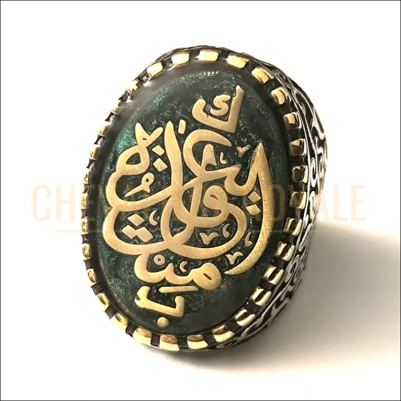 Chevalière homme sans pierre couleur vert calligraphie arabe