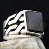 Chevalier royale pour hommes en argent style moderne pierre carrée onyx noir