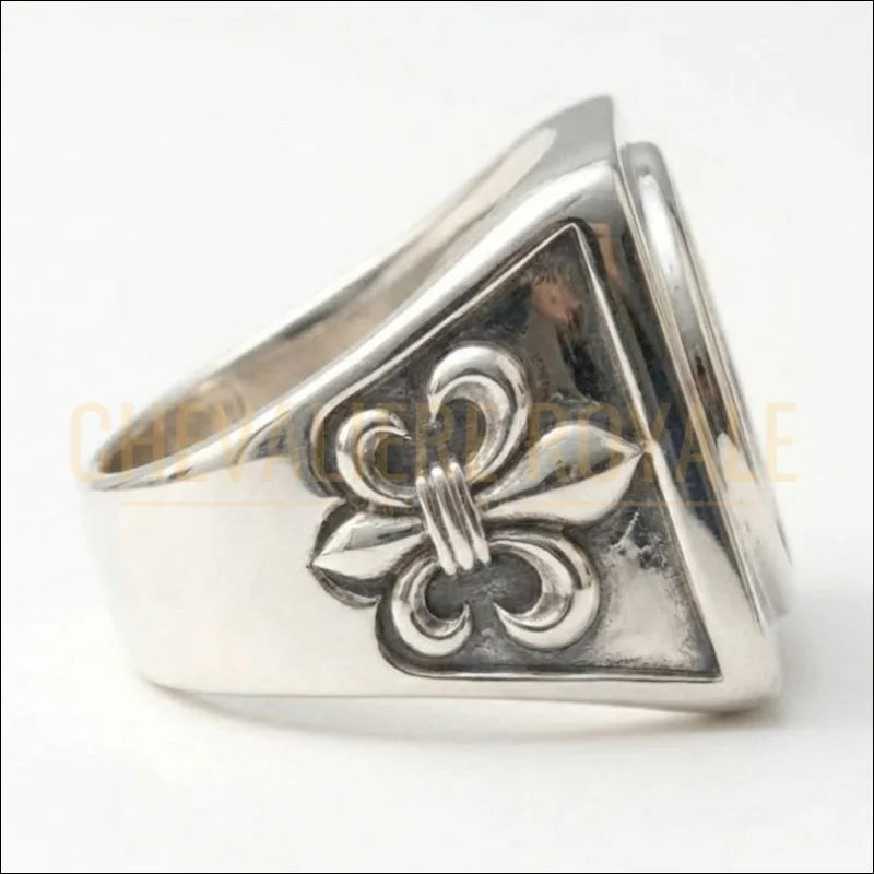 • Motif Latéral : Chaque côté de l'anneau est orné d'un relief de Fleur de Lys sculpté, renforçant l'aspect historique et le caractère massif de la bague.