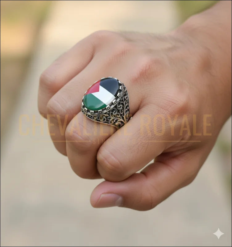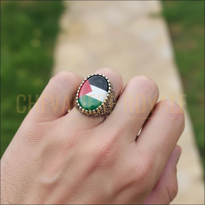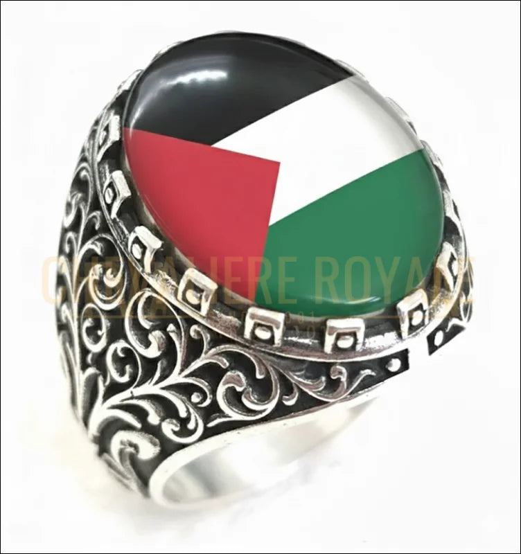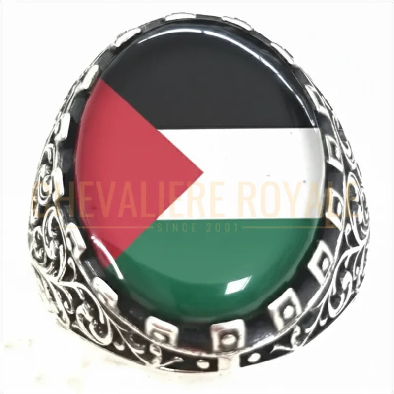 Disponible en plusieurs tailles et livrée avec certificat d’authenticité, cette bague drapeau Palestine est un véritable trésor à transmettre.
