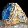 Chevalieres pour hommes en argent plaqué or pierre grande topaze bleue