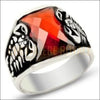 Chevalière pour homme en Argent massif de 14,11 gr, prinée d'une admirable pierre de ZIRCON rouge ayant une forme inhabituelle, l'existence de deux scorpions de chaque côté de la bague augmente de sa valeur.