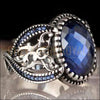 Chevaliere royale pour hommes  argent pierre diamant bleu CZ