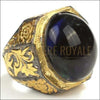 Chevalière hommes en argent artisanale pierre saphir synt. plaqué or