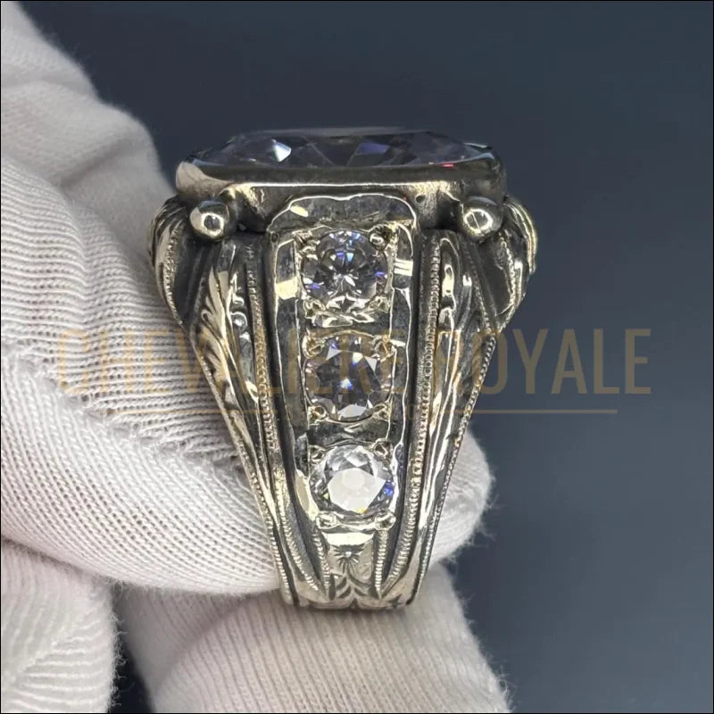 Grosse Chevalière Ornée en Argent Massif et Moissanite