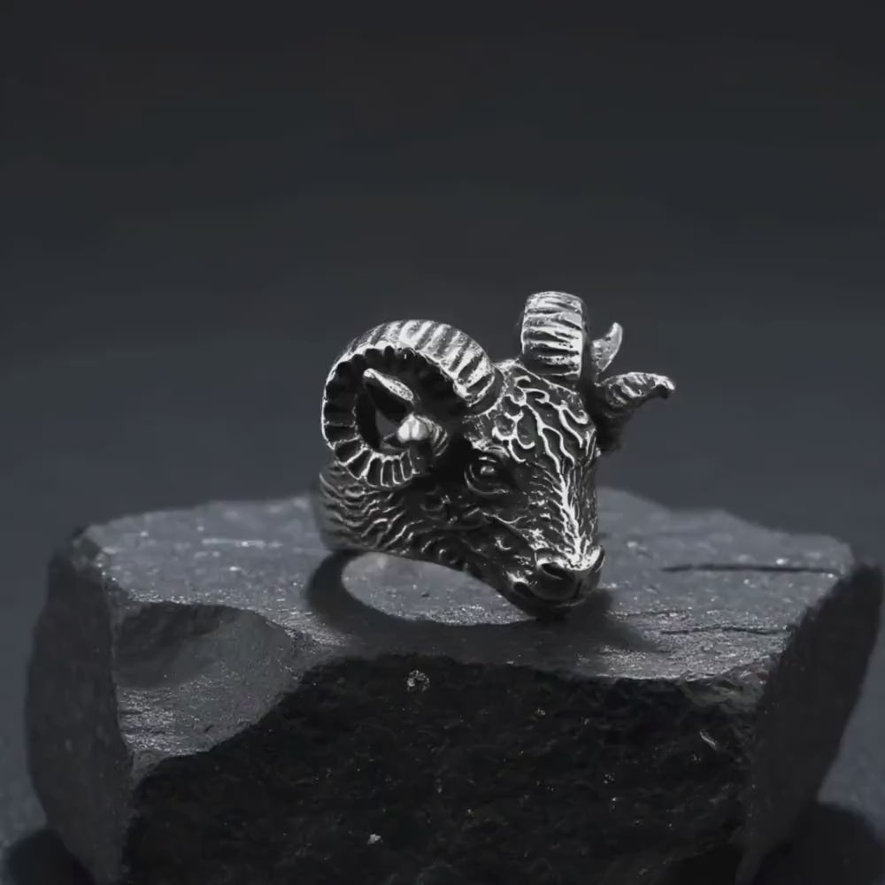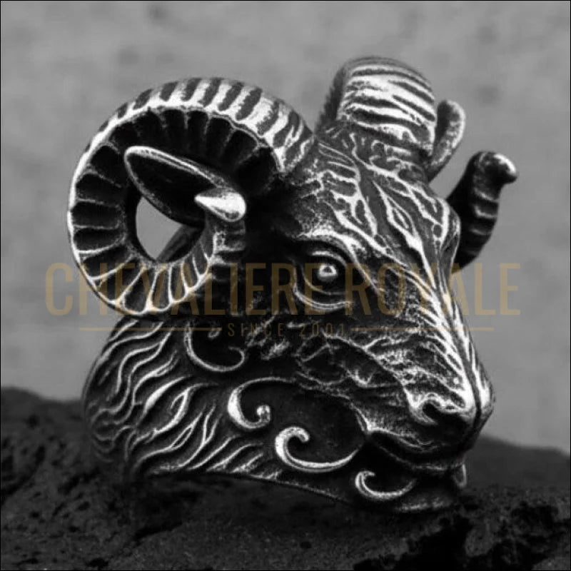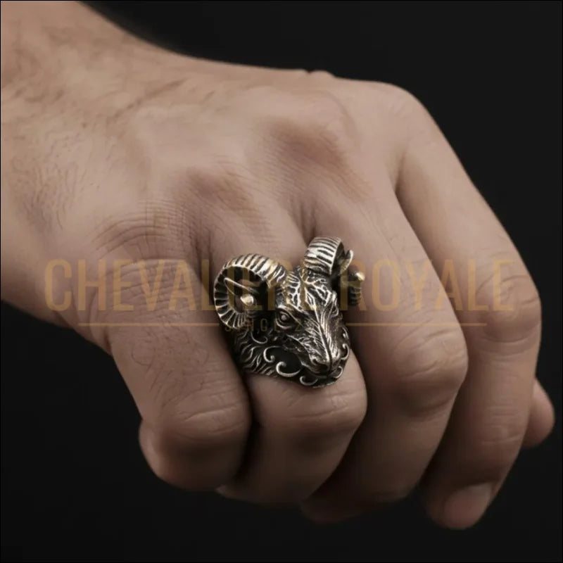 Grosse chevalière zodiaque de tête de bélier en argent massif Voir les options