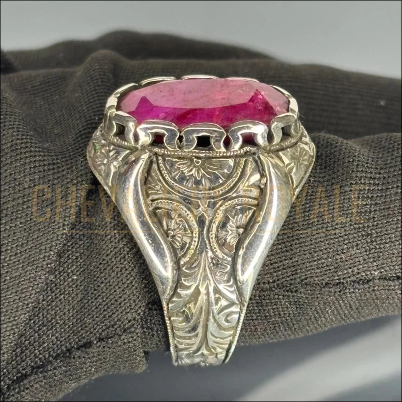 L'Héritage Carmin : Chevalière Baroque Rubis ; Argent Massif