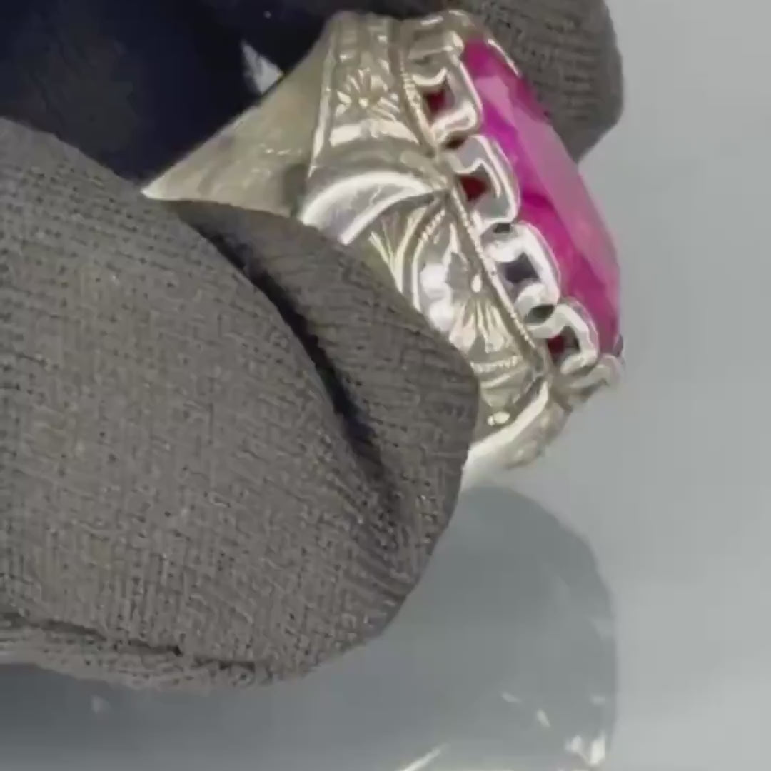 La Déclaration d'un Art Ancien : Chevalière Baroque Rubis ; Argent Massif
